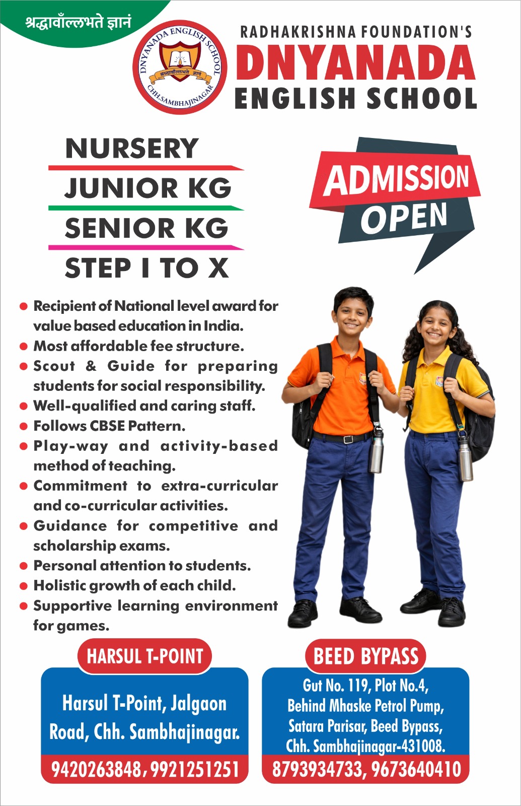 Welcome to an Educational Institution that aims to set a benchmark for others. DNYANADA ENGLISH SCHOOL is promoted by ‘Radhakrishna Foundation’ established in 2010.